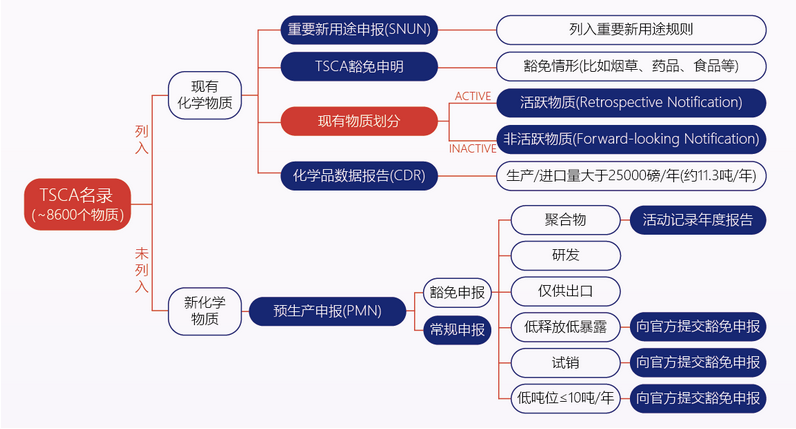 該法案旨在綜合考慮美國境內(nèi)流通的化學(xué)物質(zhì)對環(huán)境、經(jīng)濟和社會的影響,預(yù)防對人體健康和環(huán)境的“不合理風(fēng)險”。經(jīng)多次修訂,TSCA已成為美國有效管理化學(xué)物質(zhì)的重要法規(guī),也是輸美產(chǎn)品正常貿(mào)易的先決條件。列入TSCS名錄的只需要每5年開展提供一次年度報告,未列入名錄且為查新確定為新物質(zhì)的需要在進入美國市場前申請PMN通報。