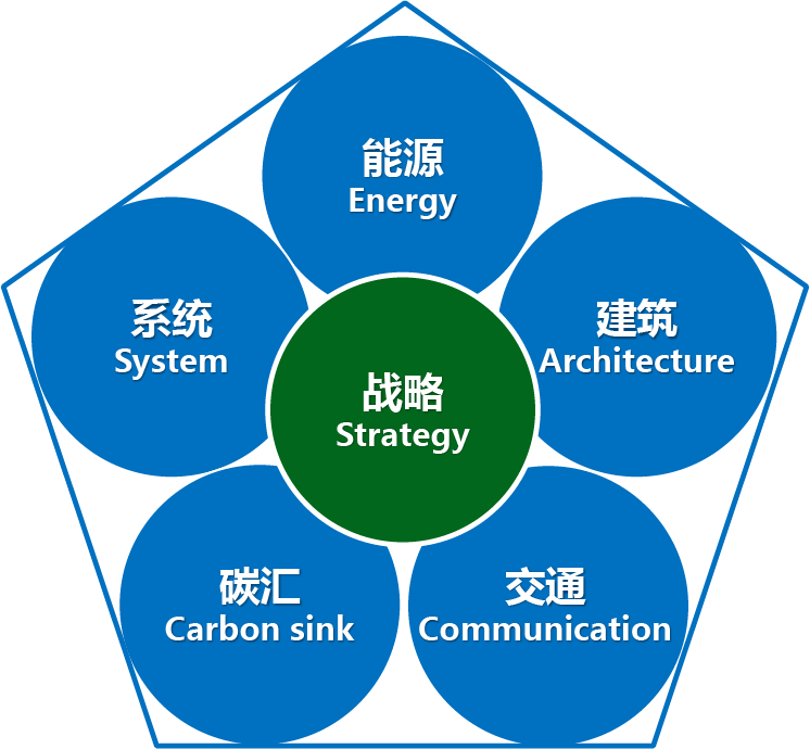 該方案從零碳園區(qū)戰(zhàn)略(Strategy)、能源(Energy)、建筑(Architecture)、交通(Communication)、碳匯(Carbon sink)及系統(tǒng)(System)等六個(gè)方面,共同構(gòu)建零碳園區(qū),同時(shí)也被簡稱為零碳園區(qū)SEACCS模型